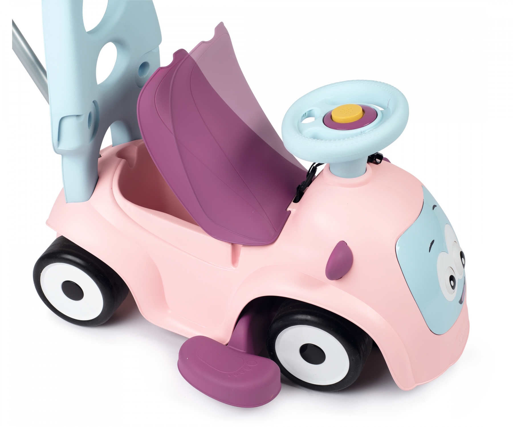 בימבה התפתחותית 3 ב-1 בצבע ורוד פסטל כולל ידית דחיפה של חברת Smoby מצרפת דגם Maestro Ride-On
