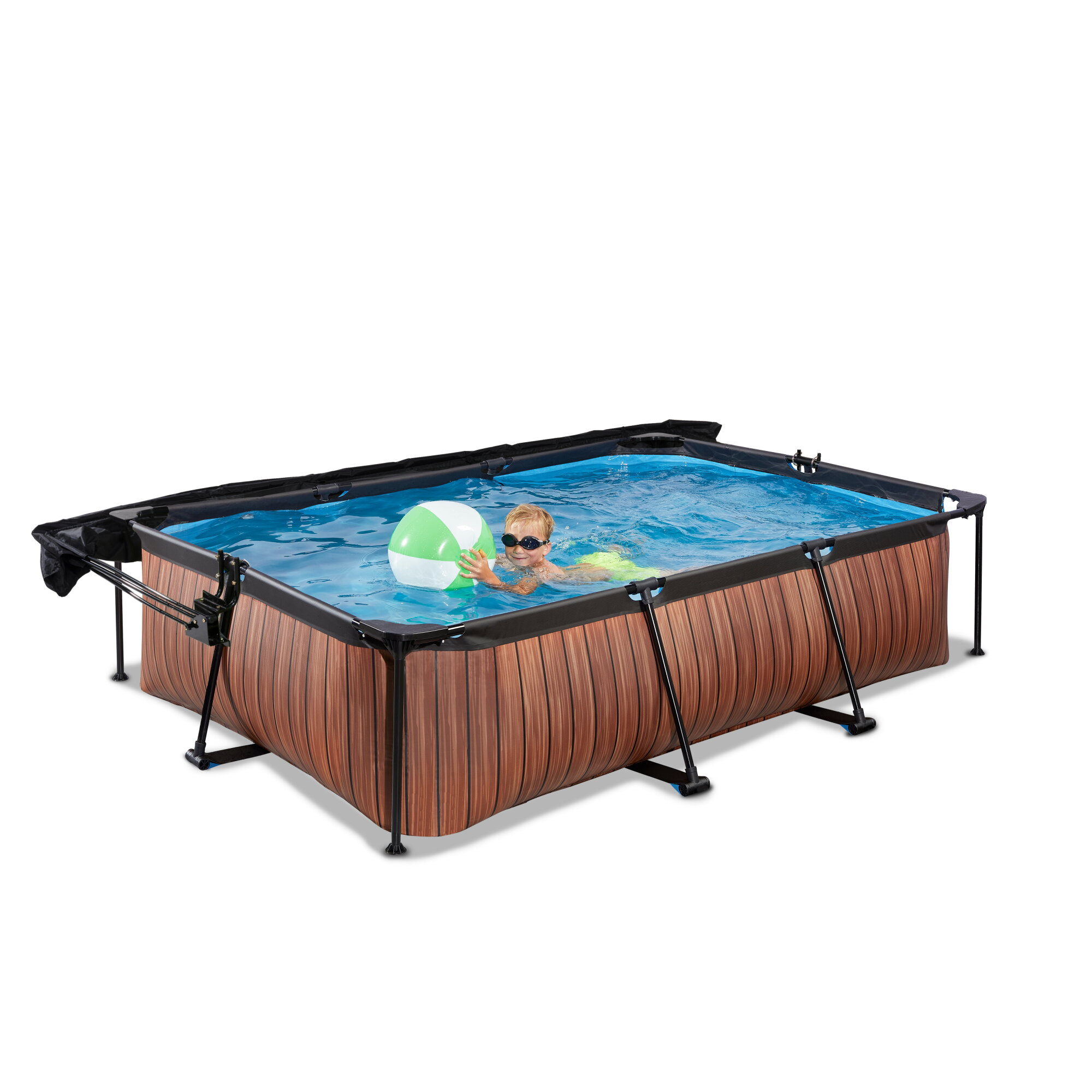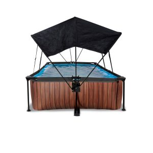 בריכה עגולה לחצר של חברת EXIT מהולנד כולל מערכת הצללה מתכווננת ומשאבה קוטר 360 ס”מ עומק 76 ס״מ חום
