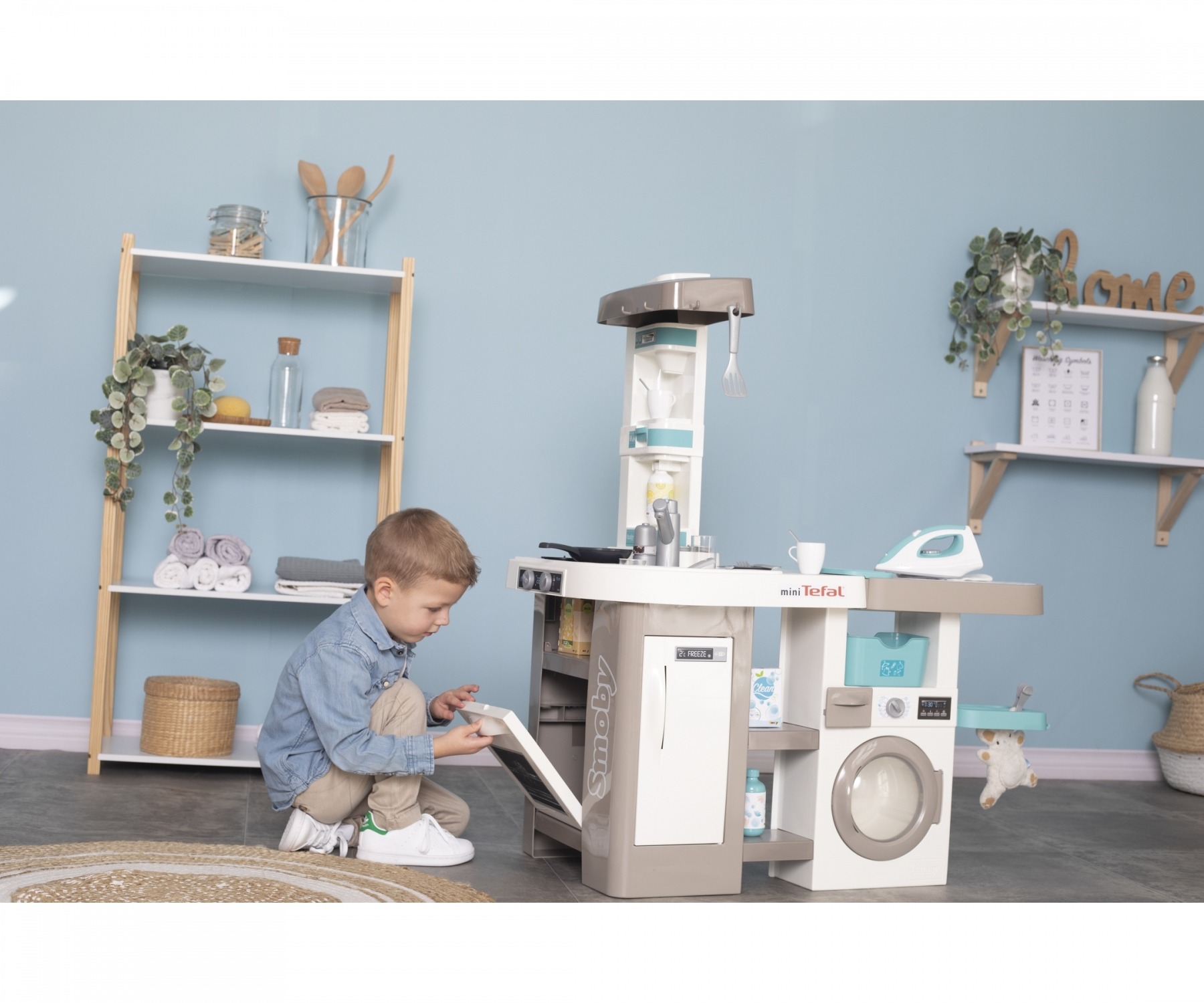 מטבח וחדר כביסה לילדים כולל פונקציות ואפקטים קוליים של חברת Smoby מצרפת דגם Tefal Cleaning Kitchen