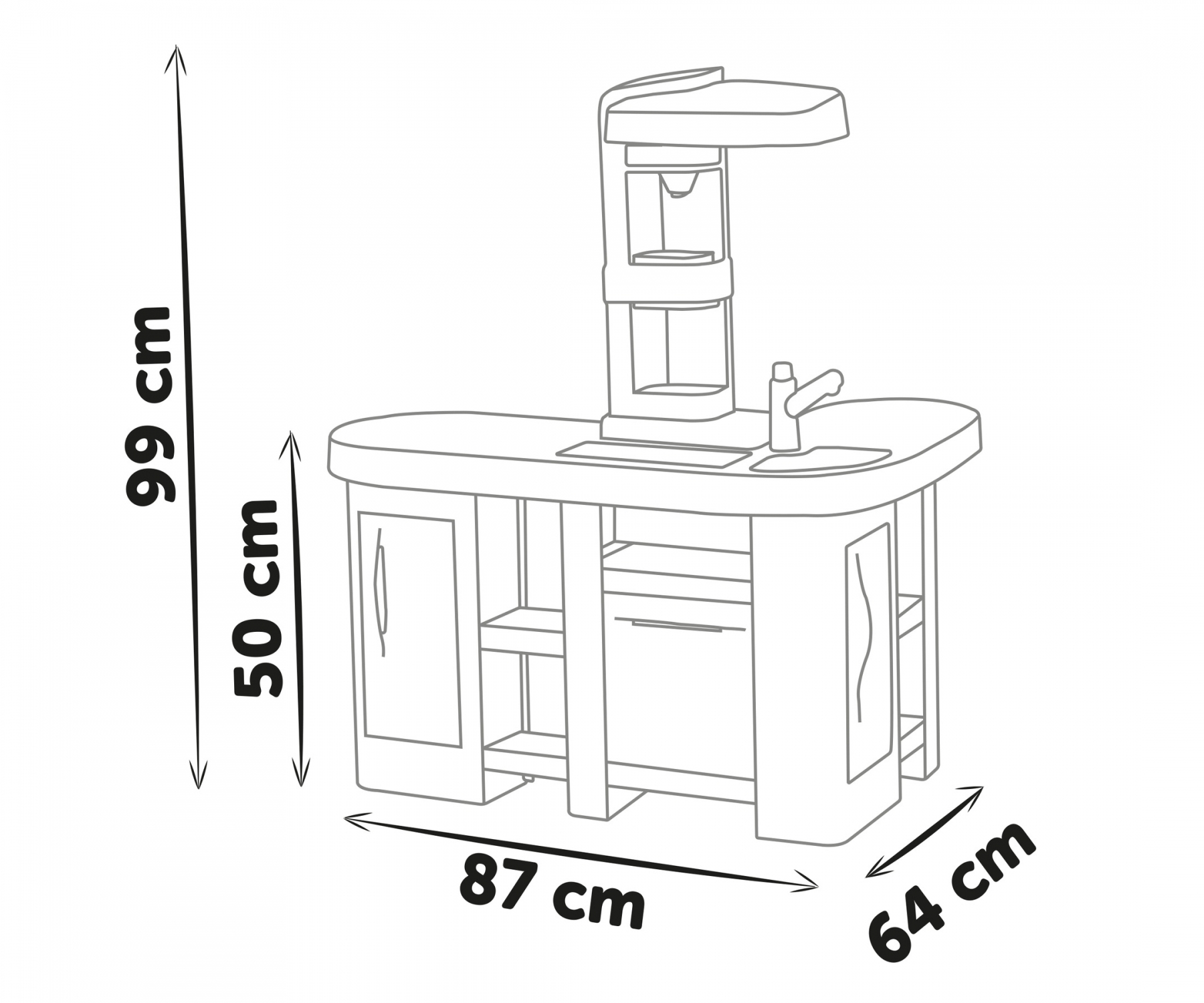 ✅ מטבח גדול ויציב בגובה 99 ס"מ – אידיאלי לילדים מגיל 3 ומעלה.