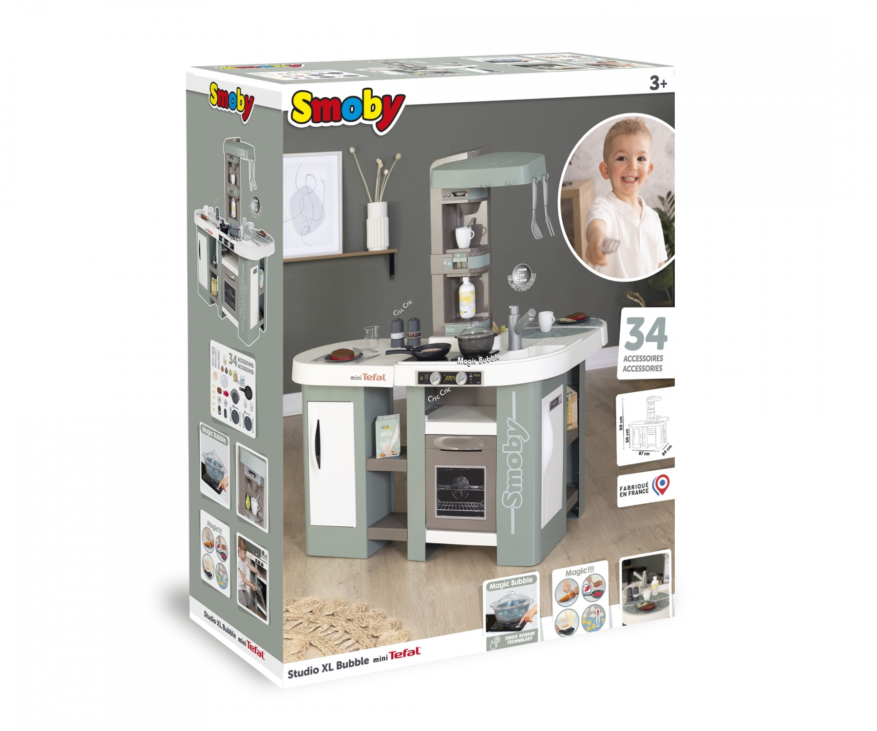 מטבח ענק לילדים כולל 34 אביזרים וכלי בישול של חברת Smoby מצרפת דגם Tefal Studio XL Bubble Kitchen