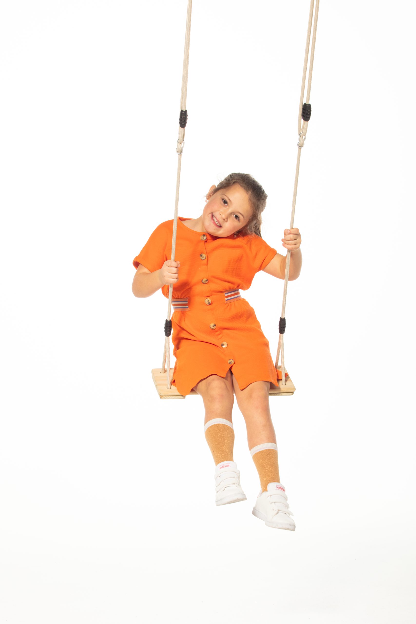 החבלים הקלועים בצבע בז׳ מוסיפים מראה טבעי וחמים, וניתנים לכיוון גובה כך שיתאימו למתקני נדנדה עד גובה של 250 ס״מ.