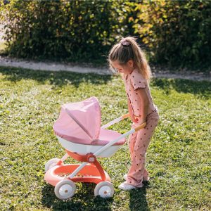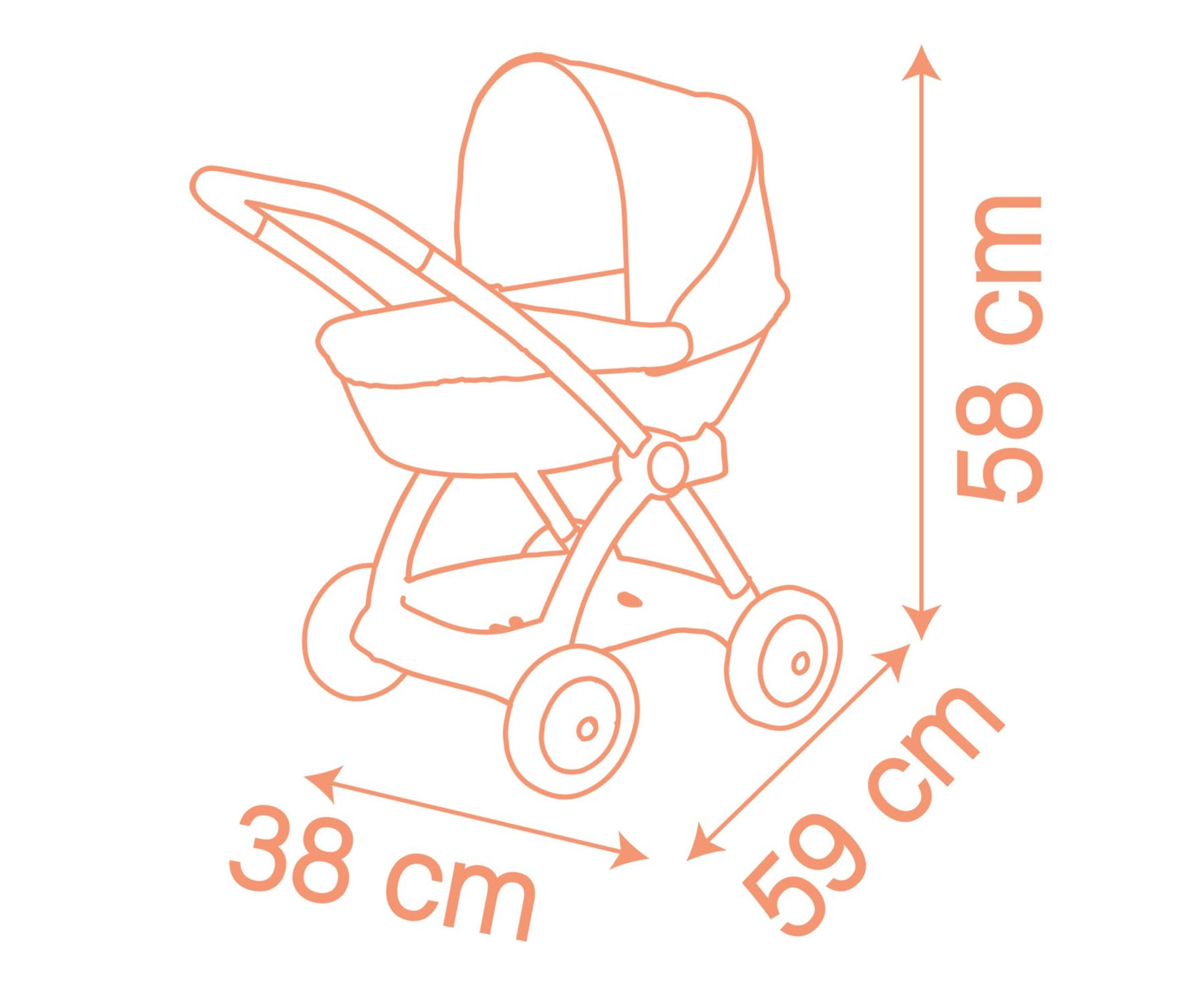 הצעצוע המושלם לילדים שרוצים לחקות את ההורים ולטפל בבובותיהם באהבה ובאחריות. העיצוב הארגונומי והיציב מבטיח נוחות ובטיחות, והעגלת הבובה כוללת גגון מתקפל להגנה מפני השמש והרוח, סל אחסון גדול לנשיאת אביזרים, וידית בגובה מותאם לילדים מגיל 18 חודשים. עגלת הבובה מתאימה לבובות עד גודל של 42 ס”מ (הבובה אינה כלולה).