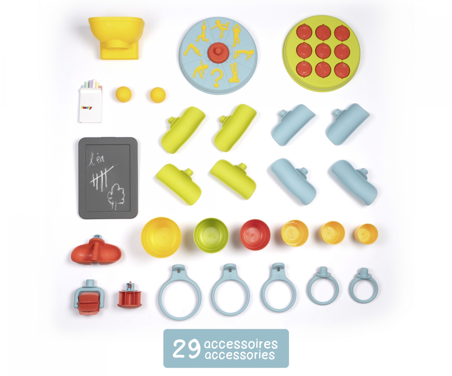 קיר הפעילות החדשני מבית Smoby מצרפת מביא לילדים שעות של משחק מהנה ומאתגר – בגינה, במרפסת וגם בתוך הבית. זהו קיר דו־צדדי עם שישה משחקי מים ומיומנות, שמזמין את הילדים לבנות מסלולים, להתנסות, לתכנן ולשפר יכולות תוך כדי משחק. עשוי לפחות 80% פלסטיק ממוחזר, עם עמידות גבוהה לשימוש יומיומי ותנאי חוץ.